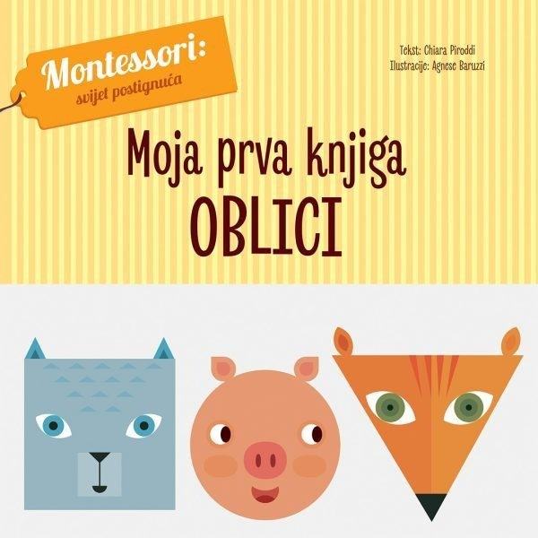 Montessori slikovnice iz serije “Moja prva knjiga” pozivaju djecu na otkrivanje obilježja svijeta i prirode koji ih okružuju. One kombiniraju Montessori principe s principima razvojne psihologije u nizu opipljivih aktivnosti kojima se na logičan i uredan način potiče razvoj specifičnih kognitivnih sposobnosti.Predložene igre i zadaci u slikovnici OBLICI potiču djetetovu prirodnu znatiželju i kreativnost te mu omogućuju aktivno učenje kroz fine motoričke vježbice i vizualno stimulativne oblike, grupe i poveznice o određenim temama i stvarima iz stvarnog okruženja. Montessori slikovnice potiču fokus i koncentraciju, samodisciplinu i ljubav prema čudu života.Montessori slikovnice iz serije “Moja prva knjiga” omogućuju djetetu da:– spontano istražuje– ispravno imenuje predmete, životinje, pojave iz stvarnog svijeta i okruženja– grupira pojmove u cjeline i rastavlja cjeline u detalje– usvoji koncept uzrok-posljedica– vježba fokus i koncentraciju– vježba finu motoriku– uči na principu pokušaj-pogreška– savlada osnovna znanja koja se očekuju u toj razvojnoj dobi (brojevi do 10, boje, oblici, životinje, okruženja i sl.)– iskusi osjećaj postignućaŠto je Montessori metoda poučavanja?Montessori metoda je prosvijećeni pristup poučavanju koji je revolucionirao način na koji se gleda na djecu. Uvjerenja o tome kako djeca uče i kako ih treba poučavati dramatično su se promijenila. Maria Montessori je zagovarala da djeca imaju urođene impulse za istraživanje, učenje i kreativnost. Vjerovala je da djeca posjeduju bogatstvo kognitivnih resursa i prirodni nagon koji im omogućuje da sami konstruiraju svoje znanje o svijetu kada su smješteni u njegujuću i poticajnu okolinu. To zahtijeva strpljenje, povjerenje i poštovanje njihovog prirodnog tempa i stupnja razvoja. Svako dijete je jedinstveno i ima bogatstvo potencijala koje treba razvijati.Pomagati djetetu u razvoju znači poticati njegovo spontano istraživanje, poštivati njegov napredak, dopustiti mu da samostalno uči kroz pokušaje i pogreške te da iskusi osjećaj postignuća.Kako je Montessori metoda protkana kroz slikovnice iz serije “Moja prva knjiga”?Ideja koja stoji iza serije Montessori slikovnica pod zajedničkim nazivom “Moja prva knjiga” je da se u iskustvo čitanja uključe najmanji čitatelji (najranije dobi od otprilike 22 mjeseca). Ove slikovnice poticat će ih i ohrabrivati da otkrivaju detalje i područja koji ih zanimaju (priroda, životinje, oblici i sl.) te im pomagati da razvrstavaju stvari i pojave koje ih okružuju.Pomoću jednostavnih ilustracija, geometrijskih uzoraka i simpatičnih likova, mališani uranjaju u ugodan vizualni doživljaj, a u interakciji s knjigom započinju učenje po Montessori metodi koja slijedi i potpomaže razvoj vizualnih i kognitivnih sposobnosti djeteta.Smjestite knjigu oko 20 centimetara od djetetova lica i oboje se smjestite u najudobniji položaj za zajedničko čitanje. Dozvolite djetetu da gleda, dodiruje, njuška knjigu bez žurbe. Potom mu pokažite linije, oblike, predmete, detalje. Vaše dijete s radošću će vas početi oponašati i svojim prstićem slijediti linije i oblike, izgovarati nazive životinja, biljaka, pojava, oblika, boja. Dijete će vrlo brzo početi uživati u igri, njegovi će prstići sve vještije trčkarati po stranicama slikovnice, a njegov mozak uživat će u tom ugodnom, nježnom i blagom učenju.Slikovnice iz serije “Moja prva knjiga” podučavaju mališane brojevima i oblicima te objašnjavaju i opisuju okruženja koja je zabavno otkrivati (domaće životinje na farmi, divlje životinje, biljke i životinje koje žive u našim dvorištima te plodove koji rastu u našim vrtovima).Dodiri i “čitanje” slika primarni su načini tumačenja, dok je pripovijedanje teksta popratni pozadinski način učenja. Slikovnice imaju glavnog lika koji je vodič i prati dijete kroz svaku priču koja se polagano razvija, a na kraju priče nalazi se sažetak svih likova predstavljenih u knjizi.U skladu s Montessori pristupom, dijete se potiče na samostalnu interakciju s knjigom. Na primjer, u nekim slučajevima od djeteta se traži da prstom ocrta obrise oblika i uoči njegove karakteristike (okrugli, oštri rubovi, nazubljeni i sl.). U drugima se od njega traži da prstom slijedi put kako bi otkrio skrivene likove i naučio ih povezivati s njihovim najkarakterističnijim obilježjima (lavlji rep, zečje uši, boje povrća i sl.).Ukoliko želite da prve slikovnice vašeg djeteta, u trenutku kad se počinje individualizirati, samostalno učiti iz iskustva i snažnije otkrivati svijet oko sebe, budu iskustvo nježnog uranjanja u razvojno poticajno učenje, ove su slikovnice pravi izbor za vas.Stranica: 22Dimenzije: 16 x 16 cmJezik: ZagrebPismo: LatinicaStanje: Nova knjigaUvez: TvrdiGodina: 2023