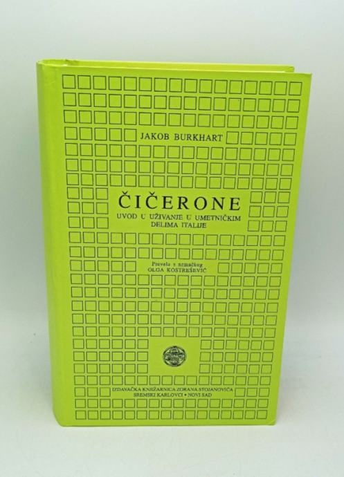 Jacob Burckhardt: ČičeroneUvod u uživanje u umetničkim delima ItalijeNamjera autora bila je da pruži pregled važnijih umjetničkih djela Italije, koji bi prolazniku brzo dao podobne informacije o postojećem, onome tko duže boravi nužne stilske paralele i osnovu za svakidašnju lokalnu povijest umjetnosti, a osobi koja je bila u Italiji osigurati ugodnu uspomenu. Namjerno je izostavljeno sve što je jednostavno arheološko. U pojedinačnim slučajevima slijedio sam vrlo različita gledišta; često sam navodio samo napomenu koja daje objašnjenje, neku povijesnu bilješku, a katkad samo sadržaj i mjesto; opis mi je bio zadatak samo ukoliko je mogao poslužiti kao ukazivanje na bitan detalj ili da olakša pronalaženje i spoznavanje dotičnih predmeta; inače sam računao samo s tim da je čitatelj vidio ili će vidjelti ono o čemu je riječ. Težio sam da jasno i potpuno određujem mjesta, u onoj mjeri u kojoj je to omogućavao obujam djela. Stranica: 920Dimenzije: 15x23Jezik: Novi SadPismo: LatinicaStanje: Nova knjigaUvez: TvrdiGodina: 2006