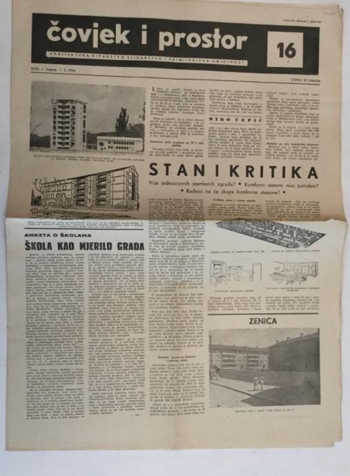 ČOVJEK I PROSTOR , ARHITEKTURA ČASOPIS BROJ 16 GODINA 1954.