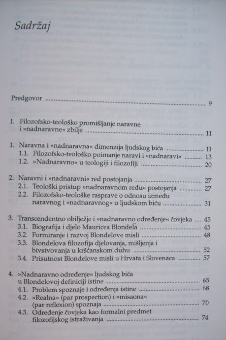 Knjiga Čovjek u svjetlu Transcendencije - nadnaravno određenje ljudskog bića u filozofiji Mauricea Blondela, plod je dugogodišnjih promišljanja o naravnoj i nadnaravnoj dimenziji čovjeka, posebno o njegovom »nadnaravnom određenju« koje dolazi do izražaja na razne načine i u raznim oblicima tijekom njegova postojanja u svijetu. Riječ je zapravo o ljudskoj žeđi, »potrebi« za »nadnaravnim«, transcendentnim, o nečem drugom što čovjek ne nalazi u sebi, u naravnom redu; o podrijetlu i uzrocima jedne takve »potrebe« trajno prisutne u čovjeku; o nedostatnosti i nedovršenosti ljudskog bića i konačno, o vjerovanju u mogućnost ispunjenja ove »praznine« i konačnog dovršenja ljudskog bića u povezivanju s nadnaravnim, transcendentnim, apsolutno savršenim Bićem, »jedino nužnim« i bezuvjetno vječnim Uzrokom svega što u vremenu nastaje i nestaje, Temeljem na kojemu sve počiva i sve se događa, najvišim Umom koji sve uređuje i čini da bude, s Mišljenjem Mišljenja koje svemu daje smisao.