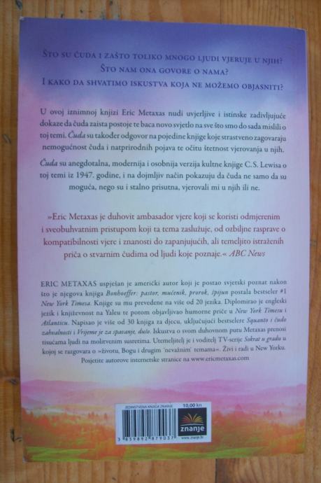 U ovoj iznimnoj knjizi Eric Metaxas nudi uvjerljive i istinske zadivljujuće dokaze da čuda zaista postoje te baca novo svjetlo na sve što smo do sada mislili o toj temi. Čuda su također odgovor na pojedine knjige koje strastveno zagovaraju nemogućnost čuda i natprirodnih pojava te očitu štetnost vjerovanja u njih.
