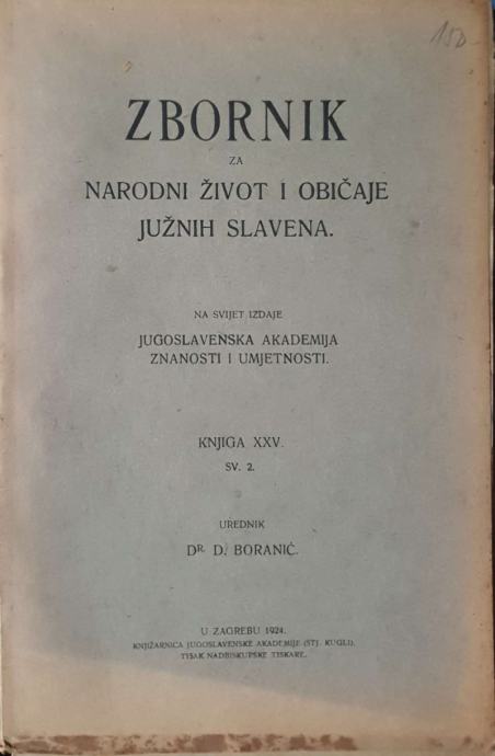 D. Boranić: Zbornik za narodni život i običaje Južnih SlavenaKnjiga XXV., sv. 2