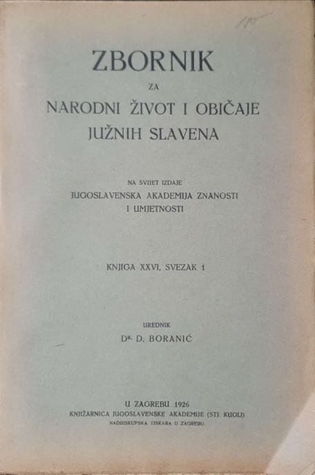 D. Boranić: Zbornik za narodni život i običaje Južnih SlavenaKnjiga XXVI, Svezak 1