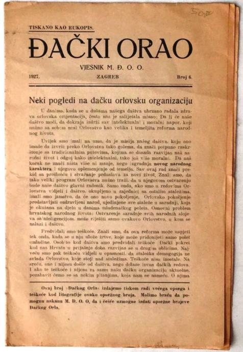 ĐAČKI ORAO : NOVINE 1927. BROJ 6