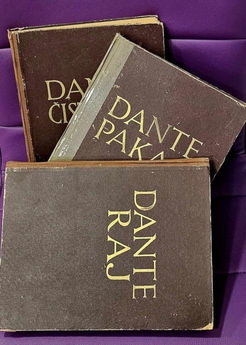 Dante Alighieri: Božanstvena komedija - Pakao, Čistilište, RajPreveo i protumačio: Dr. Isidor KršnjaviPakao - urešeno s 32 slike Mirka RačkogaČistilište - urešeno sa 17 slika Mirka RačkogaRaj - urešeno sa 12 slika Mirka RačkogaStranica: 165+155+158Dimenzije: 22.5x26.5Jezik: zagrebPismo: LatinicaStanje: Vrlo dobroUvez: TvrdiGodina: 1939