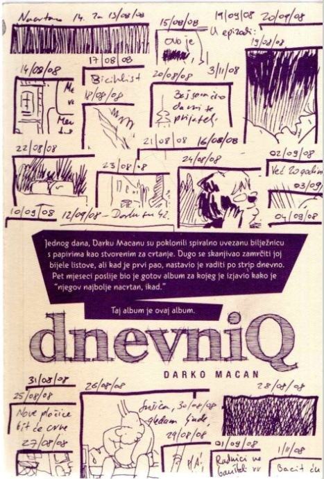 Jednog dana, Darku Macanu su poklonili spiralno uvezanu bilježnicu s papirima kao stvorenim za crtanje. Dugo se skanjivao zamračiti joj bijele listove, ali kada je prvi pao, nastavio je raditi po strip dnevno. Pet mjeseci poslije bio je gotov album za kojeg je izjavio kako je ˝njegov najbolje nacrtan, ikad.˝Taj album je ovaj album.Jezik: ZagrebPismo: LatinicaStanje: OdličnoUvez: MekiGodina: 2009