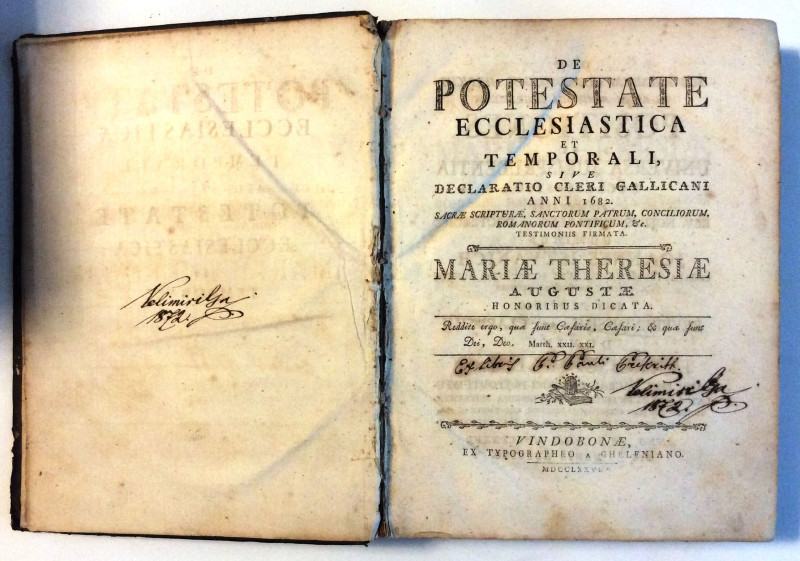 - SIVE DECLARATIO CLERI GALLICANI ANNI 1682-SACRE SCRIPTURAE, SANCTORUM PATRUM, CONCILIORUM, ROMANORUM PONTIFICUM- MARIAE THERESIE AUGUSTAE HONORIBUS DICATA- EXLIBRIS-Ex Typographeo a Gheleniano