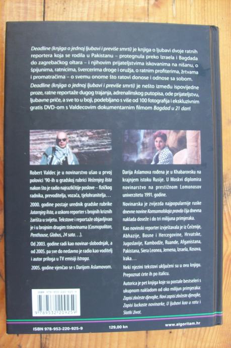 Deadline je nesto između ispovijedne proze, ratne reportaže dugog trajanja, adrenalinskog putopisa, ode prijateljstvu, ljubavne priče, a sve to u boji, podebljano s vise od 100 fotografija i ekskluzivnim gratis DVD-om s Valdecovim dokumentarnim filmom Bagdad u 21 dan!