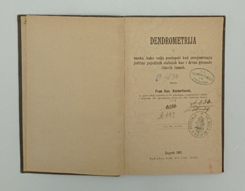 Fran Kesterčanek: Dendrometrija -ili Nauka kako valja postupati kod procjenjivanja jedrine pojedinih stabalah kao i drvne gromade čitavih šumah Stranica: 135Dimenzije: 14.5x22.5Jezik: ZagrebPismo: LatinicaStanje: DobroUvez: TvrdiGodina: 1881