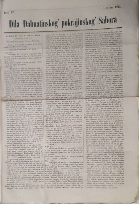 Dila Dalmatinskog pokrajinskog Sabora broj 12/1863