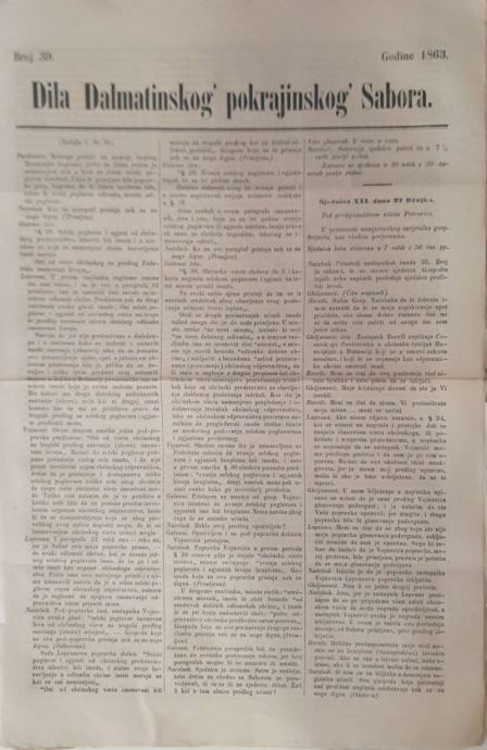 Dila Dalmatinskog pokrajinskog Sabora broj 39/1863