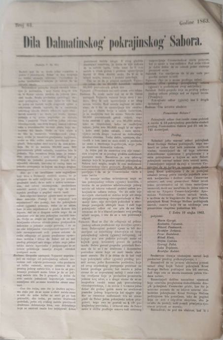 Dila Dalmatinskog pokrajinskog Sabora broj 61/1863