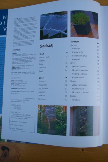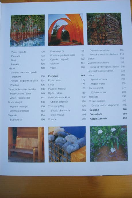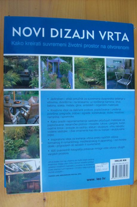 Knjiga Novi dizaj vrta je jedinstven i stilski priručnik za suvremena dizajnerska rešenja u vrtovima, dvorištima i na terasama, uz korištenje kamena, drva, betona, stakla, metala, gline, sintetskih i organskih materijala. Knjiga sadrži: Kreativne ideje za daščane podove, popločavanje i uređenje površina; pregrade, zidove i ograde; konstrukcije; stube; mostove; nameštaj i spremnike. Kako izraditi najornamentalnije sastojke uključujući materijale za popločavanje, keramičke piočice i mozaike; lukove i pergole; kutije, cvetne lonce i posude za sadnju; statue i skulpture; vrtnu rasvetu; vodene sastojke; i žive ornamente kao što su topijari i skulpturalne biljke. Inspirativne ideje za kreiranje vrtova preko različitih stilova: formalnog ili romantičnog; mediteranskog ili japanskog; i od morske obale i prigradskih do seoskih ili savremenih. 600 izvanrednih fotografija prikazuje mnoge vrste vrtova i drugih vanjskih prostora.