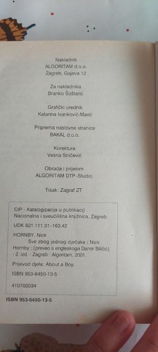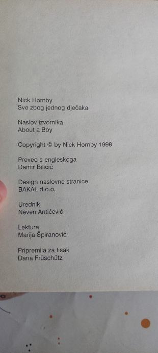NICK HORNBY - SVE ZBOG JEDNOG DJEČAKA