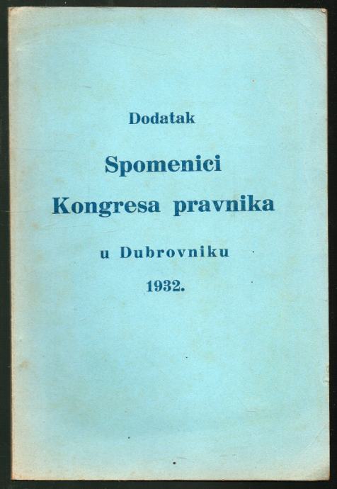 Dodatak spomenici Kongresa pravnika u Dubrovniku 1932.