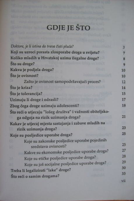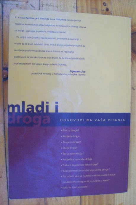 Knjiga je namjenjena mladima kao sustavan slijed odgovora na relevantna pitanja vezana uz droge i uporabu pojedinih sredstava ovisnosti. Po svojoj uvjerljivosti i neposrednosti, po svojem povjerenju u mlade da će znati odabrati život, ova knjiga je vrijedan priručnik za razvijanje pozitivnig odnosa prema životu, za razvijanje osjetljivosti za istinske životne vrijednosti. te bi bilo vrijedno učiniti je pristupačnom što većem krugu mladih čitatelja.