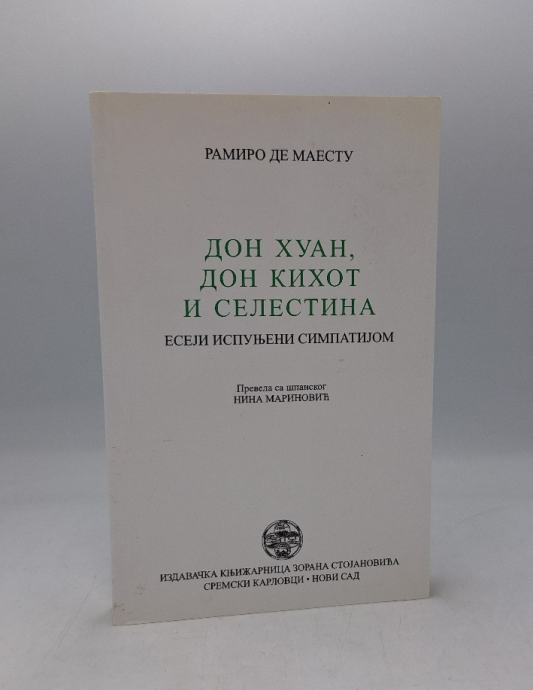 Ramiro De Maeztu: Don Huan, Don Kihot i SelestinaEseji ispunjeni simpatijomVeći dio ovih pokušaja tumačenja objavljeni su na stranicama lista "La Prensa", neki u sadašnjem obliku, s veoma malim izmjenama, a neki toliko prerađeni da se u njima može prepoznati samo istovjetna tematika. Još u vrijeme kada su pisani bilo je očigledno da će biti objedinjeni u cjelinu pod nazivom: "Eseji ispunjeni simpatijom", jer su stvarani uz suze, smijeh i snove o sreći, kao i sami španjolski književni mitovi - Don Kihot!, Don Huan!, Selestina! - čije višestruke vibracije i dalje osjećamo. Budući da sam ih objavio u obliku knjige, pravedno je da na prvim stranicama navedem ime slavnog novinara koji je doveo svoj dnevni list do savršenstva koje mu dozvoljava da se, nakon što nas opskrbi dnevnim informacijama, posveti trajnim vrijednostima.Gospodinu Eskijelu de Pasudirektoru lista "La Prensa" iz Buenos Airesa Stranica: 242Dimenzije: 11x18Jezik: Novi SadPismo: ĆirilicaStanje: Nova knjigaUvez: Meki s ovitkomGodina: 2011