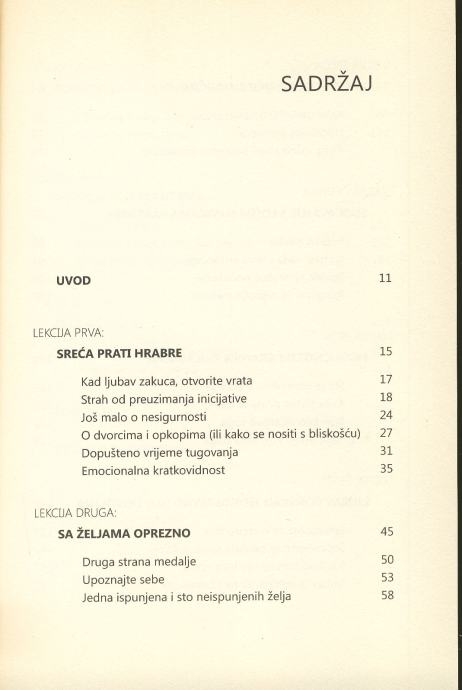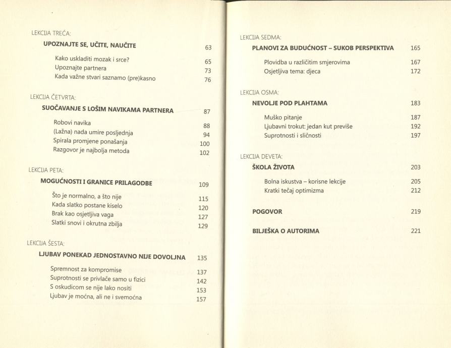MANJE OD 10% VEZA ZAVRŠI SRETNO. U ČEMU JE NJIHOVA TAJNA? • Postoje li ljubavi koje nikako ne mogu uspjeti? • Pronaći bilo koga i nije tako teško, ali kako pronaći pravog ili pravu? • U Hrvatskoj svaki četvrti brak završi razvodom. Zašto? Postoje li znakovi da bi se nešto slično moglo dogoditi i vama? • Pisano prema iskustvima autora web stranica www.sretneveze.com i primjerima pročitanim iz više od 2000 pisama! • Knjiga sadrži preko 40 dosad neobjavljenih pisama posjetitelja portala www.sretneveze.com! „U knjizi smo iznijeli ono što je nama pomoglo da progledamo i shvatimo u čemu smo griješili, zašto smo se godinama vrtjeli u krug ponavljajući iste ludosti iz dana u dan. Tek sada znamo zašto smo tako uporno ulazili u pogrešne veze. Iskreno se nadamo da će ova knjiga na sličan način pomoći i vama. Jer znate već kako to ide u životu: pronaći bilo kakvog partnera i nije tako teško, prava je umjetnost naći onog pravog, onog uz kojeg ćete se osjećati istinski sretnima i ispunjenima!“ Dora i Robert Jurčić