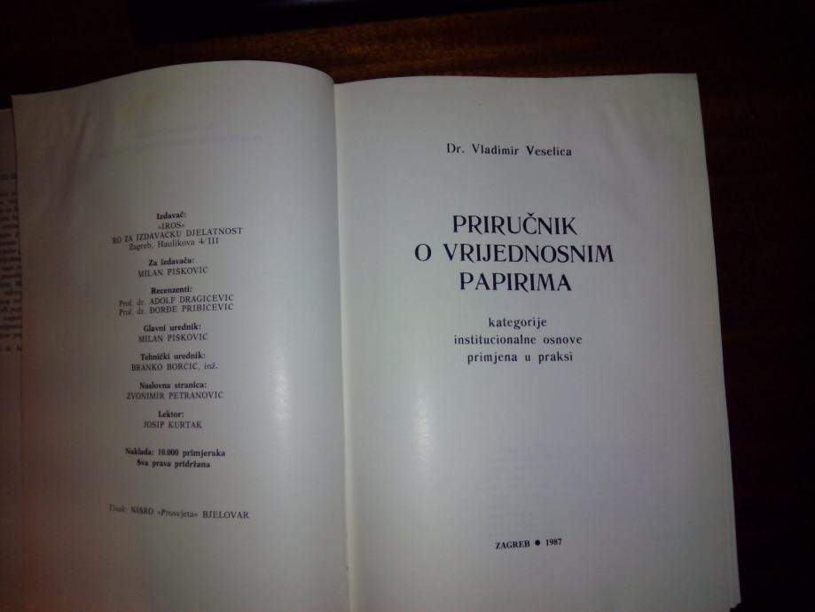 DR. VLADIMIR VESELICA PRIRUČNIK O VRIJEDNOSNIM PAPIRIMA