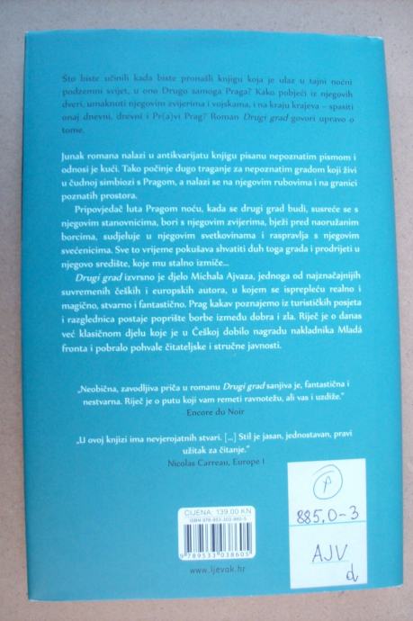 „U Ajvazovu romanu Drugi grad prava borgesovska kohorta nakaznih stvorenja, ptica koje govore i ekscentričnih stanovnika grada vreba na marginama jednoga alternativnog Praga. Neimenovani protagonist doznaje da je knjiga napisana na nepostojećem jeziku zapravo ulaz u opasan svijet koji se nalazi iza ugla, tek nekoliko koraka od normalna života. Sve češće i češće, protagonist slučajno nailazi na prizore iz toga drugoga grada – potajno svjedoči nekakvom posve nerazumljivom vjerskom obredu, sluša poučno predavanje o temi Najnovijih otkrića o Velikoj bitki u dubini soba. Stanovnici toga grada nisu oduševljeni potezima tog uljeza: progone ga lasice, na njega pucaju iz helikoptera, a zamalo ga je pojelo i neko stvorenje koje izgleda kao morski pas.U međuvremenu, razgovori koje slučajno načuje pretvaraju se u besmislice, u kipovima žive sobovi, dok ptice recitiraju stihove iz neke epske pjesme. Ajvazov roman veličanstvena je matrioška nerazumnosti, zagonetnosti i besmislica – uistinu uvrnuta i dojmljiva.“