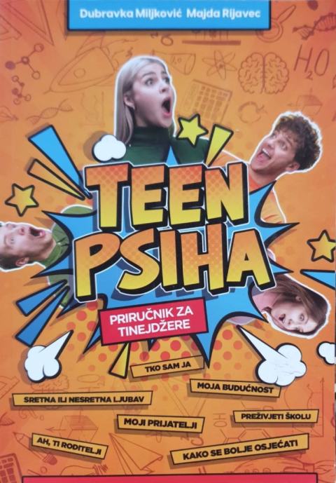 Dubravka Miljković, Majda Rijavec: Teen psihaPriručnik za tinejdžereKako steći prijatelje, popraviti raspoloženje, umiriti strah i zabrinutost ili pak ojačati mišić samokontrole - odgovori na najčešća pitanja odrastanja nalaze se u priručniku za tinejdžere autorki Dubravke Miljković i Majde Rijavec. Interaktivni priručnik sadrži mnoštvo neposrednih smernica koje tinejdžere upućuju da se jače oslone na sopstvene snage i lakše reše probleme s kojima se svakodnevno susreću, kao i niz upitnika koji im pomažu da bolje upoznaju sebe. Pregledan i komunikativan, s grafičkim elementima koje prate sadržaj, priručnik za odrastanje pruža tinejdžerima oslonac za snalaženje u društvu, a može poslužiti i kao povod za razgovor s vršnjacima ili odraslima. Roditeljima i nastavnicima takođe može poslužiti kao prozor u tinejdžerski svet i kao savetnik za bolje obostrano razumevanje.
