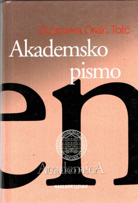 Knjiga Dubravke Oraić Tolić Akademsko pismo: Strategije i tehnike klasične retorike za suvremene studentice i studente priručnik je za pisanje akademske proze (od seminarskih radova do doktorske disertacije) kakav u domaćoj humanistici do sada nismo imali. Osim sadržajne iscrpnosti i logičke strukturiranosti knjigu krasi izražajna jasnoća i primjenjivost. Brojnim primjerima, jasnim i jednostavnim razjašnjenjima i grafičkim isticanjima autorica daje odgovor ili savjet za rješenje mnogih problema, od izražajnih konvencija znanstvenoga diskursa do citatnih stilova i mehanike teksta. Autorica ne zaboravlja ni suptilnije probleme znanstvenoga rada poput kolebanja oko izbora teme i početnoga "straha od bjeline papira", racionalne organizacije istraživanja te strategija "ranoga pisanja" i sustavne provjere završne verzije teksta.Stranica: 681Dimenzije: 160 x 240 mmJezik: ZAGREBPismo: LatinicaStanje: OdličnoUvez: TvrdiGodina: 2011