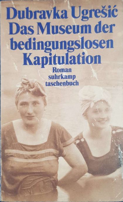 Dubravka Ugrešic: Das Museum der bedingungslosen KapitulationRoman suhrkamp taschenbuchKritički hvaljena eksperimentalna književna fikcija poznate hrvatske autorice u egzilu, Das Museum der bedingungslosen Kapitulation; poznate jugoslavenske spisateljice Dubravke Ugrešić započinje u berlinskom zoološkom vrtu, gdje je sadržaj želuca Rolanda Morža izložen pokraj njegovog bazena (Roland je umro u kolovozu 1961.). Ti predmeti, upaljač za cigarete, štapići za lizalice, otvarač za boce piva itd., poput samog fiktivnog dijela romana, isprva su naizgled nasumični, ali se na kraju spajaju, smisleno i poetski. Napisan u raznim književnim oblicima, Das Museum der bedingungslosen Kapitulation prikazuje razoreni svijet života u egzilu.S posvetom na prvoj stranici