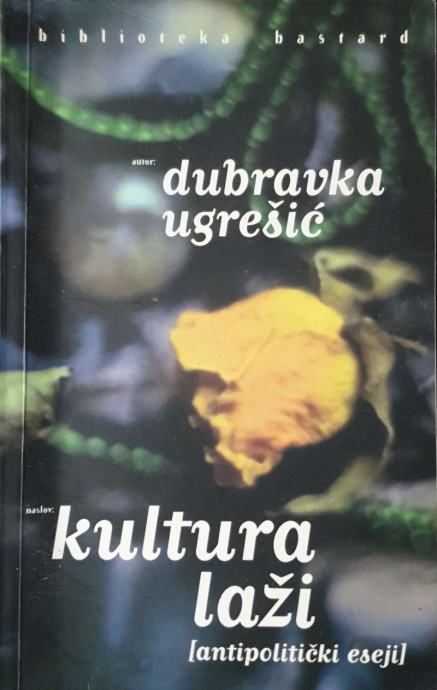 Dubravka Ugrešić: Kultura laži - antipolitički esejiEseji u ovoj knjizi pisani su u razdoblju od 1991-1994. Mnogi od njih objavljivani su u evropskim časopisima i novinama. Izjednačujući moralnu i političku odgovornost, autorica u ovoj zbirci, kako ih je sama nazvala, antipolitičkih eseja, kritički preispituje duhovnu bijedu nacionalističkih projekata, koje su mnogi intelektualci izravno ili neizravno, šutnjom, poduprli i tako bili djelatnim čimbenikom društvenih kriza i zastrašujućih ratnih zbivanja na području bivše Jugoslavije.