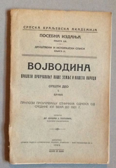DUŠAN POPOVIĆ, VOJVODINA, PRILOZI PROUČAVANJU NAŠE ZEMLJE I NAŠEGA NAR