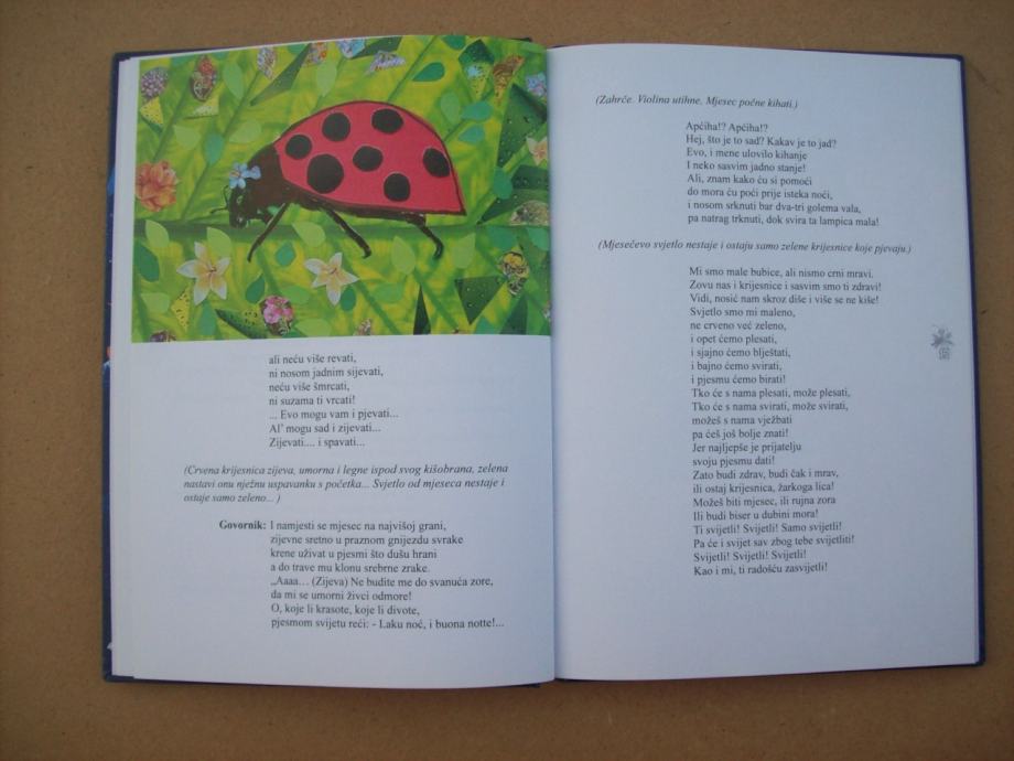 „Knjiga sadrži igrokaz i osam priča: Dvije krijesnice, Ćelavi jež, Crno-bijeli svijet, Labud, Baka Breza i sedam crnih mačaka, Kapetanska kapa, Gradska paučica, Pet malih prijatelja i Galeb. Priče su to koje u djeci izazivaju pozitivne emocije i želju za prepričavanjem i čitanjem.“