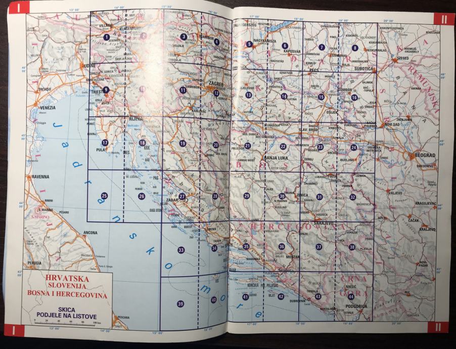 Džepni autoatlas Hrvatske, Slovenije te BiH / 44 str, 1:500.000 /24,09
