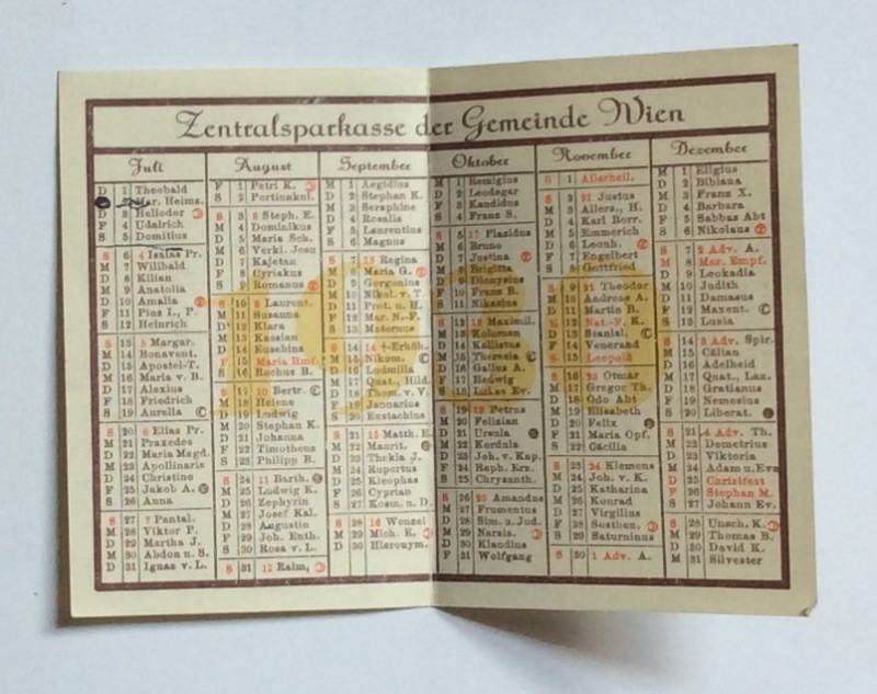 DŽEPNI KALENDAR, ZENTRALSPARKASSE DER GEMEINDE WIEN, AUSTRIA, 1930
