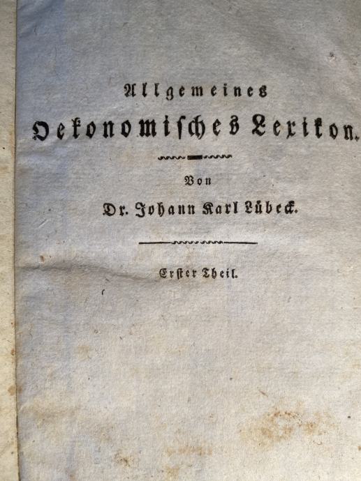 Ekonomski Leksikon: objašnjava riječi i daje pouke o svim stvarima, koje se odnose općenito na poljodjelstvo onog doba, kao: