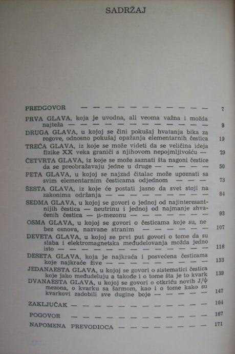Cilj ove knjige je omogućiti čitatelju da osjeti atmosferu u kojoj žive fizičari koji proučavaju elementarne čestice.