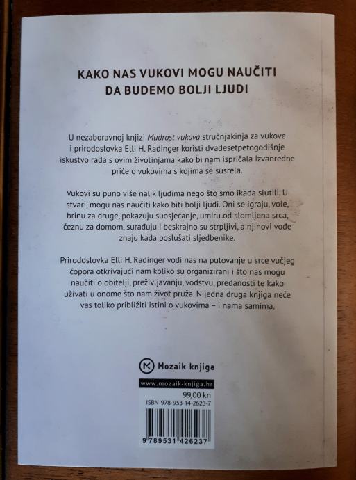 Fascinantna, autentična studija o vukovima iz pera dugogodišnje njemačke istraživačice i zaljubljenice u vukove Elli H. Radinger, koju bi svaki čovjek trebao pročitati. Knjiga koja će srušiti mnoge duboko ukorijenjene mitove i neutemeljene strahove od vukova, te ujedno šokirati i obogatiti čitatelja nekim potpuno novim spoznajama.