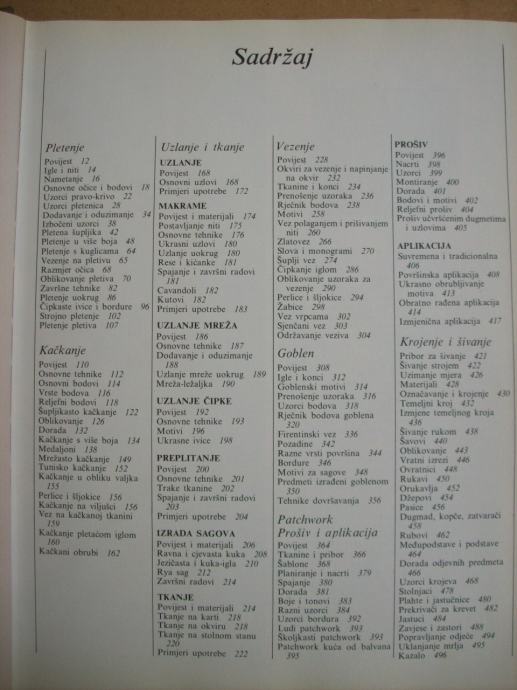 pletenje, kačkanje, uzlanje i tkanje, vezenje, gobleni, patchwork – prošivanje – aplikacija, šivanje.