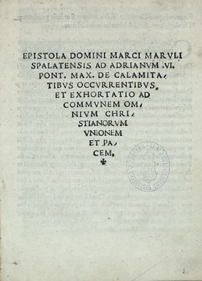 Epistola domini Marci Maruli Spalatensis ad Adrianum VI. pont. max. de