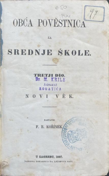 F. B. Kořínek: Obća povestnica za srednje škole - Novi vek