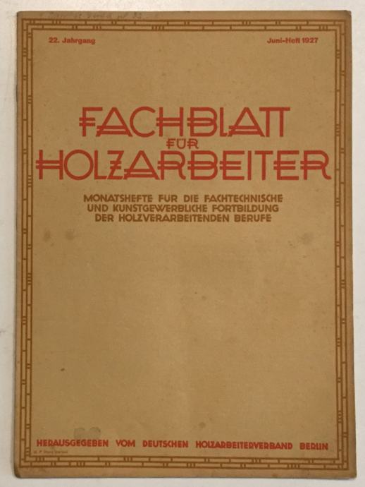 FACHBLATT FUR HOLZARBEITER, JUNI. 1927