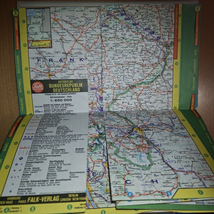 Falk - Karta Europe i Auto-atlas Bundesrepublik Deutschland rane 70-te