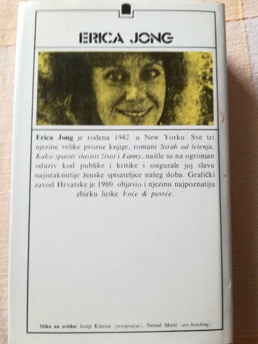 I ovaj roman Erice Jong (tvrdi uvez plus omot) naišao je na ogroman odaziv kod publike i kritike, osiguravši joj svjetsku slavu. Zbog prikaza oslobođene seksualnosti i feminističkih stavova te vječne teme muško-ženskih odnosa, E. Jong je kod dijela kritike dočekana kao ženski pornograf i seksualni manijak. Otkrijte zašto.