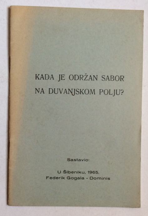 FEDERIK GOGALA DOMINIS: KADA JE ODRŽAN SABOR NA DUVANJSKOM POLJU