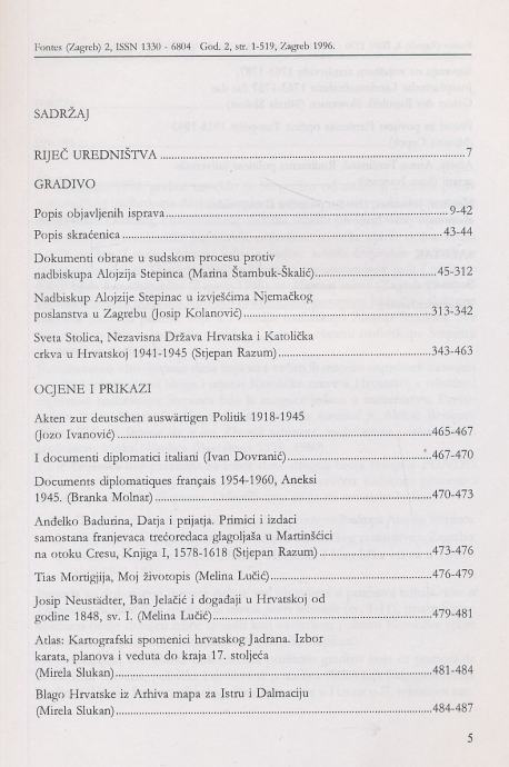 Fontes Izvori za hrvatsku povijest Alojzije Stepinac