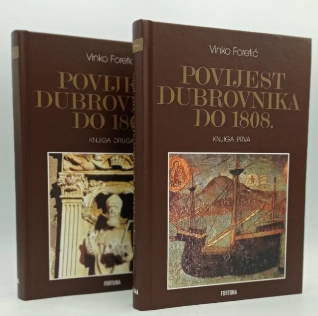 Pretisak prvog izdanja iz 1980g,koje ima kazalo autora što prvo izdanje nije sadržavalo. Potkraj života Foretić je objavio svoje kapitalno djelo, dvosveščanu sintezu dubrovačke povijesti Povijest Dubrovnika do 1808. (1980). U tim je knjigama sažet i sintetiziran Foretićev životni rad na dubrovačkoj povijesti. Poznavanje goleme literature, znanstveno iskustvo i višedesetljetni rad na izvornom gradivu omogućili su autoru da sustavno, za širi krug čitateljstva kao i za znanstvenu publiku izloži povijest Dubrovnika od ranoga srednjeg vijeka do sloma Republike 1808. godine. Sve prije izrečene znanstvene kvalitete krase i to Foretićevo djelo. Prva knjiga obuhvaća razdoblje do 1526. i kronološki prati proces nastanka i razvoja dubrovačke komune, prvo pod bizantskim i kratkotrajnim normanskim suverenitetom, a potom pod vrhovnom mletačkom vlašću. Minuciozno je obrađen postupni proces dubrovačkog osamostaljenja i prerastanja komune u Republiku koji je bio obilježen diplomatskim uspjesima, a pokatkad sukobima i pravim ratovima koje su Dubrovčani vodili sa susjednim vladarima u zaleđu. Pritom Foretić razmatra unutarnje i vanjske aspekte dubrovačkih političkih odnosa, argumentirajući svoje prosudbe i sučeljavajući različita gledišta o prijepornim pitanjima. Iako je razdoblje početnih osmanskih osvajanja obuhvaćeno u prvoj knjizi, detaljnoj analizi dubrovačko-osmanskih odnosa posvećen je znatan dio druge knjige koja započinje događajima nakon mohačkog poraza 1526. U tom su svesku obrađeni promjenljivi odnosi Republike s europskim silama, ponajprije španjolskim i austrijskim Habsburgovcima te s engleskim, francuskim i ruskim dvorom. Foretićeva analiza trnovitog puta dubrovačke politike, osobito tijekom borbe za opstanak Republike nakon velike trešnje 1667. baca pravo svjetlo na prečesto idealizirane i shematizirane prikaze dubrovačke povijesne zbilje.Dimenzije: 17x24 cmJezik: ZAGREBPismo: LatinicaStanje: Nova knjigaUvez: TvrdiGodina: 2019