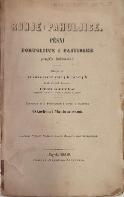 Fran Kurelac: Runje i pahuljice. Pesni porugljive i pastirske ponajvec