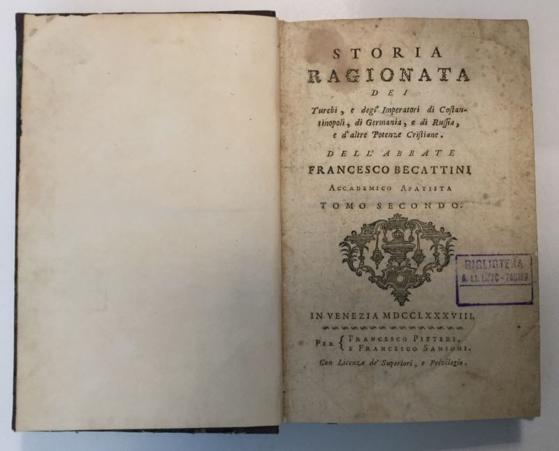 - STORIA RAGIONATA DEI TURCHI, E DEGL' IMPERATORI DI COSTANTINOPOLI, DI GERMANIA, E DI RUSSIA, E D' ALTRE POTENZE CRISTIANE- 2. TOM- IN VENEZIA 1788