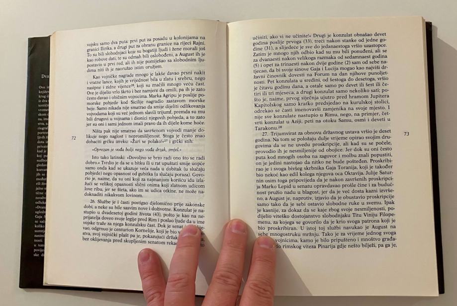 Ovo izvanredno djelo stare rimske književnosti zanimljivo je za najširi krug današnjih čitatelja prvenstveno iz dva razloga: prvo, zato što je to autentično svjedočanstvo jednog suvremenika, koji je, boraveći na rimskom dvoru kao tajnik cara Hadrijana, imao uvid u najtajnije arhive carstva, a, drugo, zato što to nije historiografsko djelo, već niz biografskih portreta careva s mnoštvom zanimIjivih životnih podataka, priča i anegdota iz javnog, i još više iz njihova privatnog života, i što je već onda kad je nastalo bilo namijenjeno širokoj publici, koja više voli velike i sudbonosne povijesne događaje sagledavati kroz svakidašnjicu, kroz takozvane male, trivijalne stvari od kojih se sastoji život. U životu careva, međutim, koji su doslovno gospodarili životima svojih podanika, te trivijalne sitnice često poprimaju dramatične oblike, a njihov privatan život neodvojiv je od velikih historijskih odluka i pothvata. »Dvanaest careva« jedina je knjiga uglednog i plodnog rimskog pisca Gaja Svetonija Trankvila koja nam se sačuvala gotovo čitava (osim ne koliko prvih stranica), i danas, bez sumnje, predstavlja jedno od naj zanimljivijih djela svjetske književnosti. Njezina posebna vrijednost je u tome što obuhvaća vremenski i povijesno vrlo značajan period rimske države, onaj na koji najčešće mislimo kad govorimo o rimskom carstvu. To su otprilike dva stoljeća – posljednje stoljeće stare ere i prvo stoljeće nove ere – od Julija Cezara, osnivača rimske monarhije, pa do cara Domicijana. Pa ipak, premda se portreti careva nižu bez preskoka, ovdje nema kontinuirane priče kao u povijesnim pregledima gdje se panoramski povezuju događaji i ličnosti u prostoru i u vremenu da bi se stvorila ili dočarala što potpunija slika svijeta. Ovo je mozaik sastavljen istovremeno od djelića »prave« i »velike«
