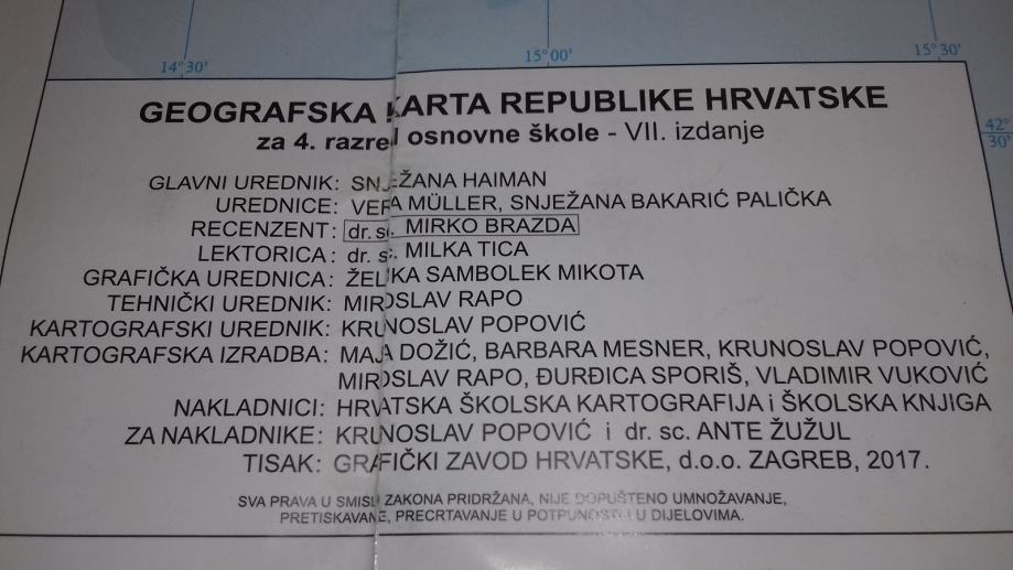 Geografska karta Hrvatske za 4. razred OŠ - 2017. godina