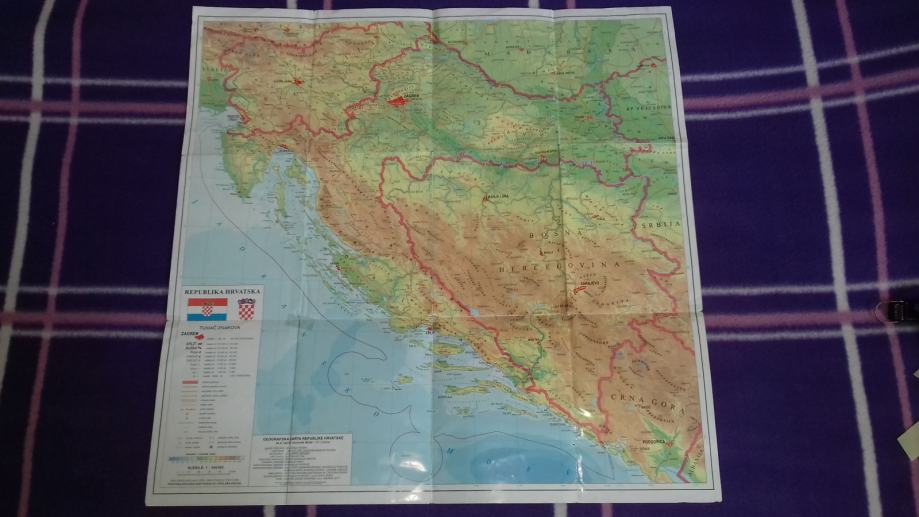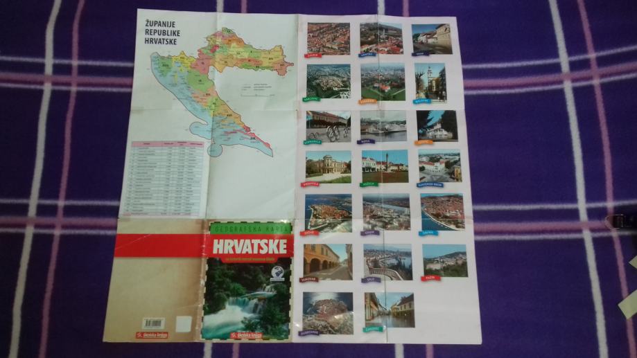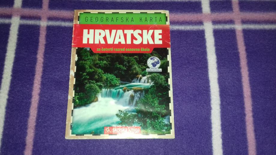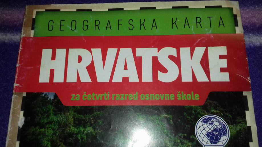 Geografska karta Hrvatske za 4. razred OŠ - 2017. godina, u odličnom stanju.