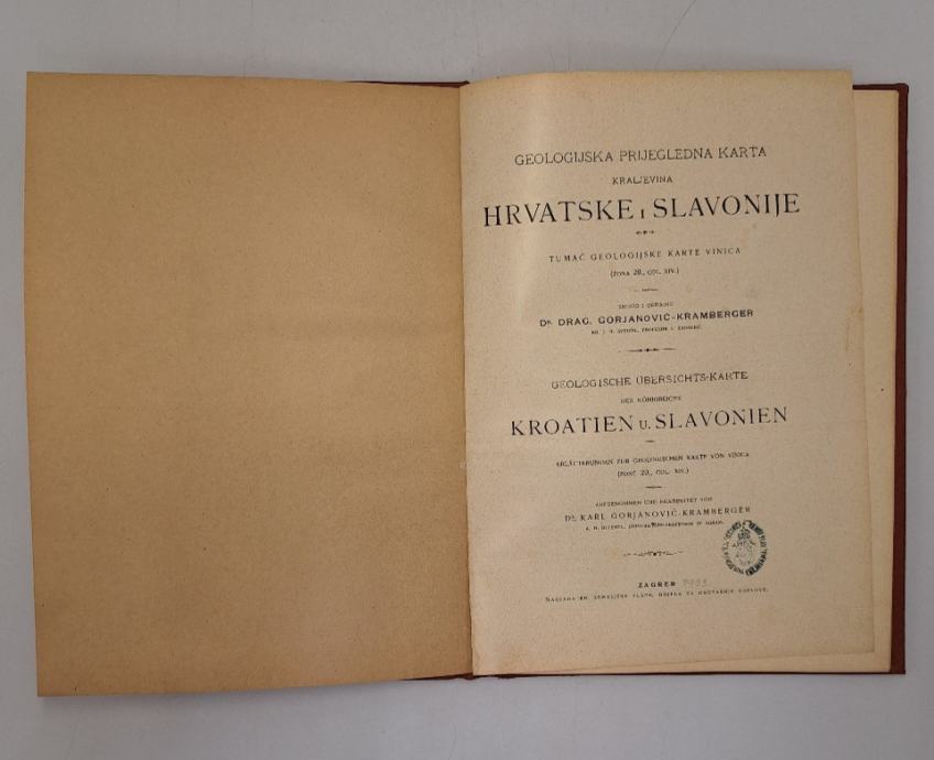 : Geologijska prijegledna karta Kraljevine Hrvatske i Slavonije: tumač geologijske karte Vinica (zona 20., col. XIV.)Geologische Üebersichtskarte Königreiche Kroatien und Slavonien : Erläuterung zur geologischen Karte von Vinica (Zone 20., col. XIV)Stranica: 30Dimenzije: 20x27.5Jezik: ZagrebPismo: LatinicaStanje: Vrlo dobroUvez: TvrdiGodina: 1903